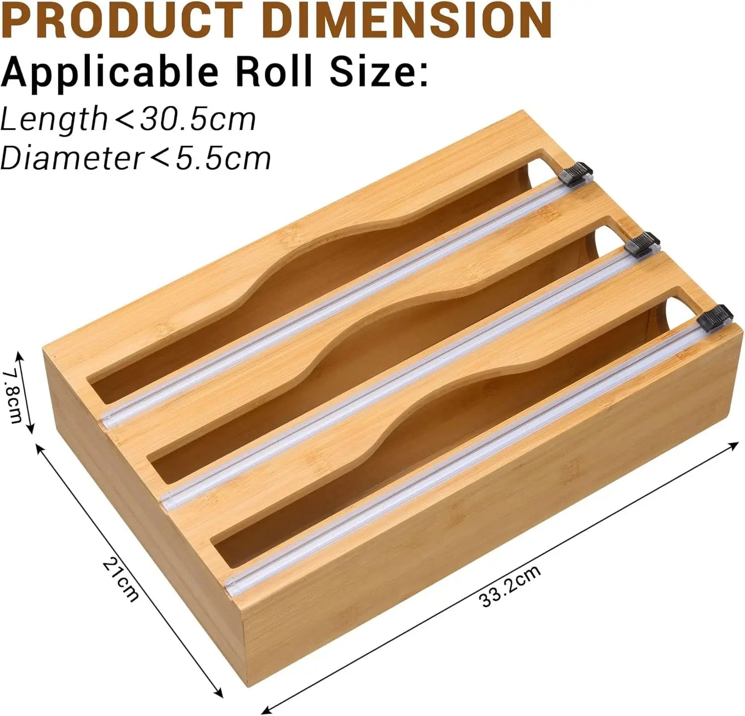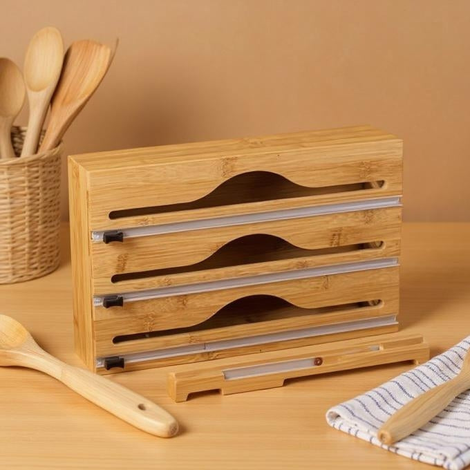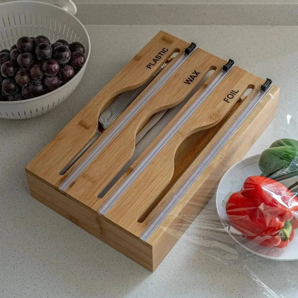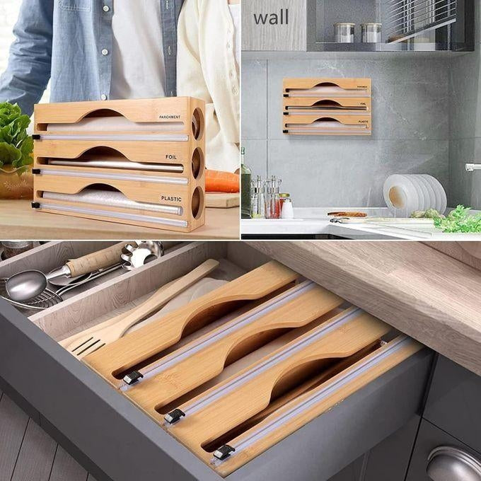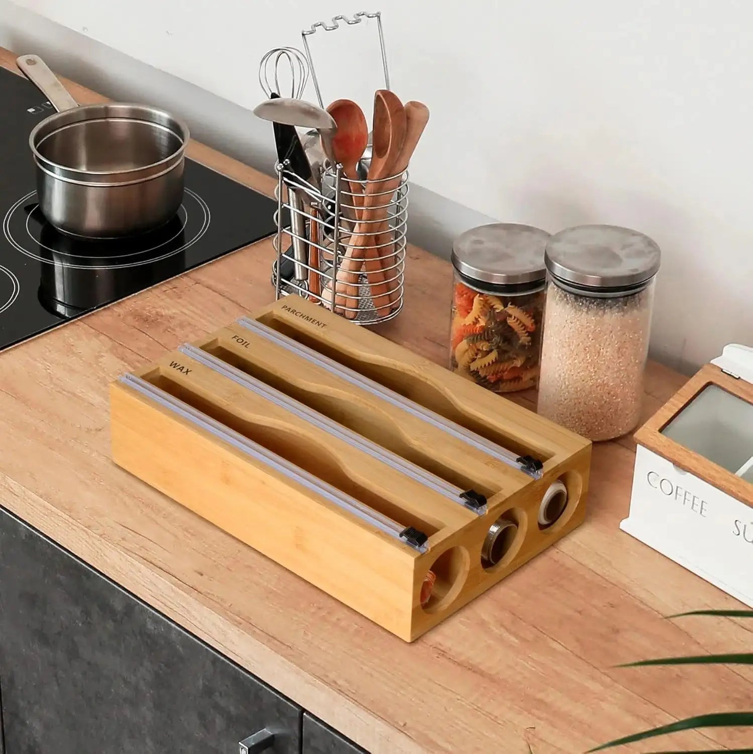 موزع أوراق المطبخ 3 في 1 من خشب البامبو الطبيعي